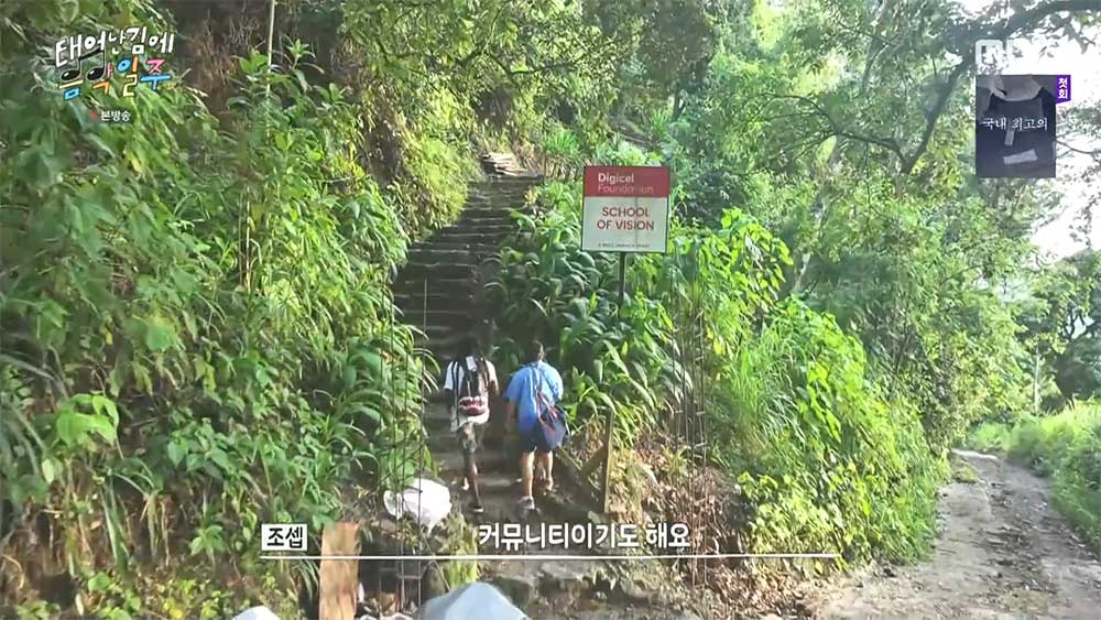 길 어귀에 주차를 하고 조셉이 살고 있는 곳인 School Of Vision으로 오르는 계단 입구로 이동한다. 일명 라스타 캠프 (Rasta Camp)라고 불리우는 곳인데 이곳에서부터 걸어서 700걸음이라고 한다. 입구 근처에서 세계 3대 커피라고 하는 블루 마운틴 커피 원두도 보고 계단 올라 조셉의 집으로 향한다. 하지만 걸으면 걸을수록 볼리비아의 포르피가 떠 오른다. 포르피도 걸어서 10분 거리에 폭포가 있다고 해서 따라갔는데 걷다 보니 1시간을 걸어서 도착했기 때문이다. 경치는 좋지만 생각보다 높고 험한데 살고 있었다.