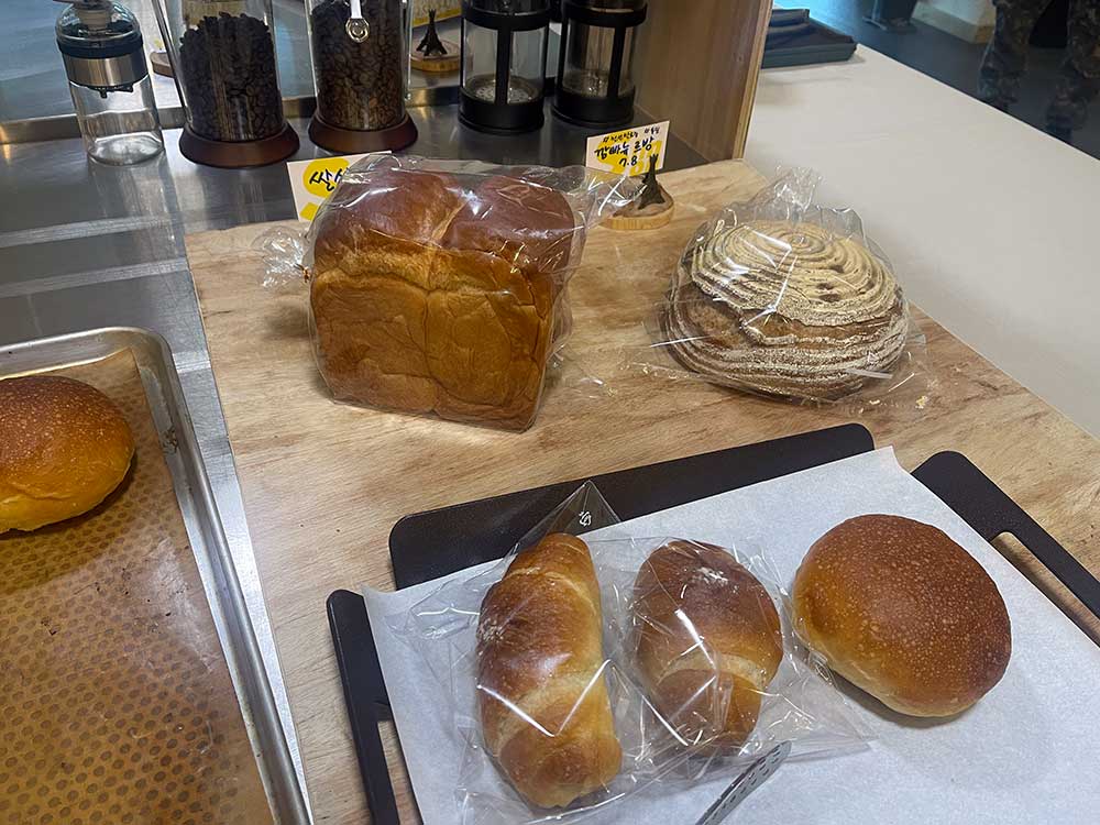본격적인 휴가철임과 동시에 평일 그리고 식사 시간이 지난 오후라서 그런지 사람들이 많이 보이진 않았지만 근처 군부대의 군인들이 커피와 빵을 사기 위해 매장을 방문했다.