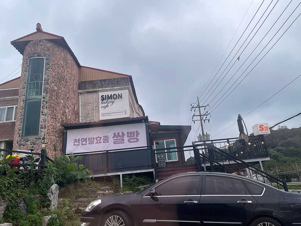 시몽 베이커리는 길가에 있었다. 빈 공간은 주차장으로 활용하여서 많은 차량은 아니지만 그래도 10대가량 주차가 가능하지 않을까 생각된다. 기온은 높지만 흐린 하늘 덕에 햇빛이 강하지 않아 드라이브하기엔 제격인 날씨에 도착한 시몽 베이커리.