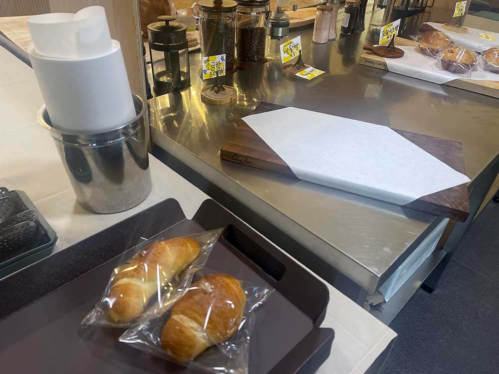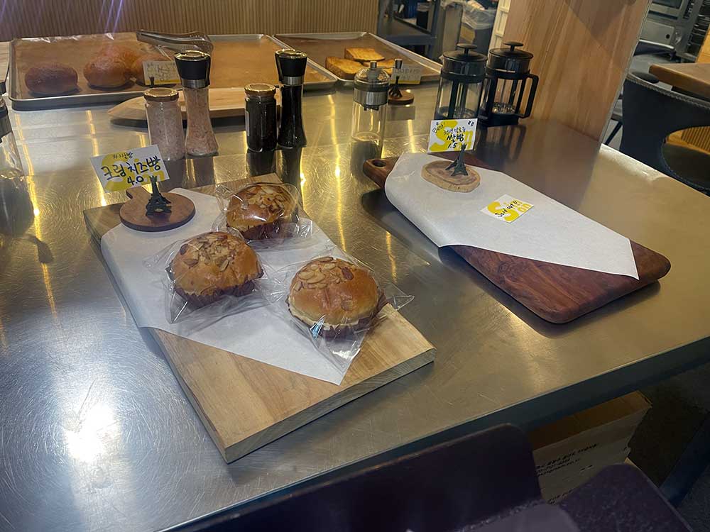 빵 구매 시, 곧바로 먹는다면 카운터에서 오븐에 데워 주신다. 하지만 그렇게 하지 않을 경우 빵을 오븐 또는 에어프라이기에 2분 정도 돌려서 먹으면 좋다고 알려 주신다.