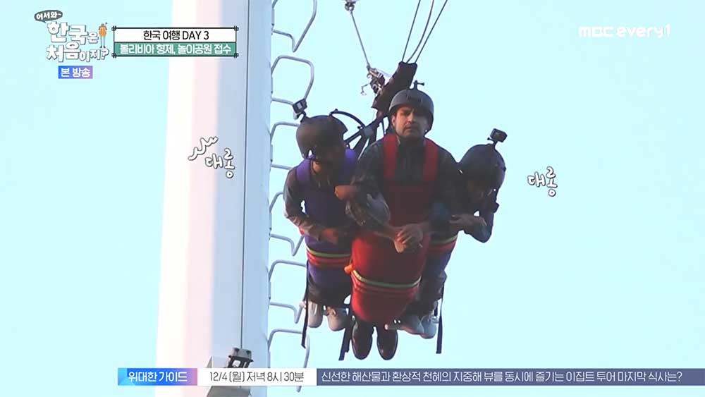 집라인을 타고 높은 산과 산 사이를 다녔던 그들이지만 이때만큼은 모두 긴장을 했다.
