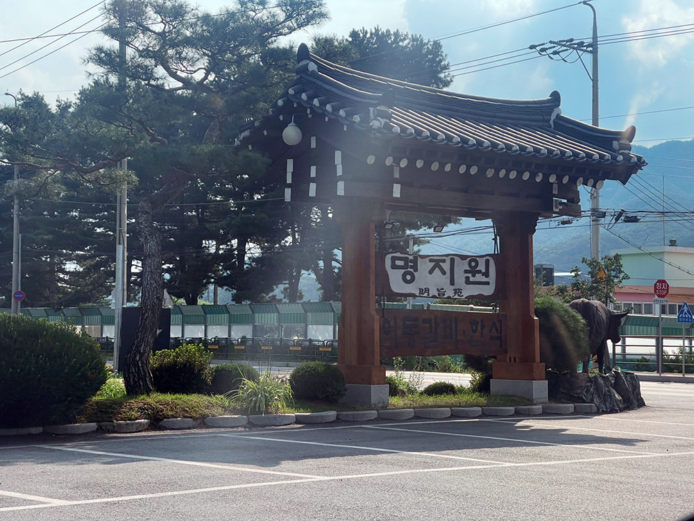 이동면에는 여러 갈빗집들이 있는데 그중 명지원이라고 하는 갈빗집을 소개받았다. 검색해 보니 1999년에 시작하였으며 한옥 건물에 넓은 주차장을 보유하고 있었다. 얼핏 보면 관광지에 넓은 부지를 가지고 대량으로 음식을 판매하는 대형 음식점처럼 보이기도 했다.