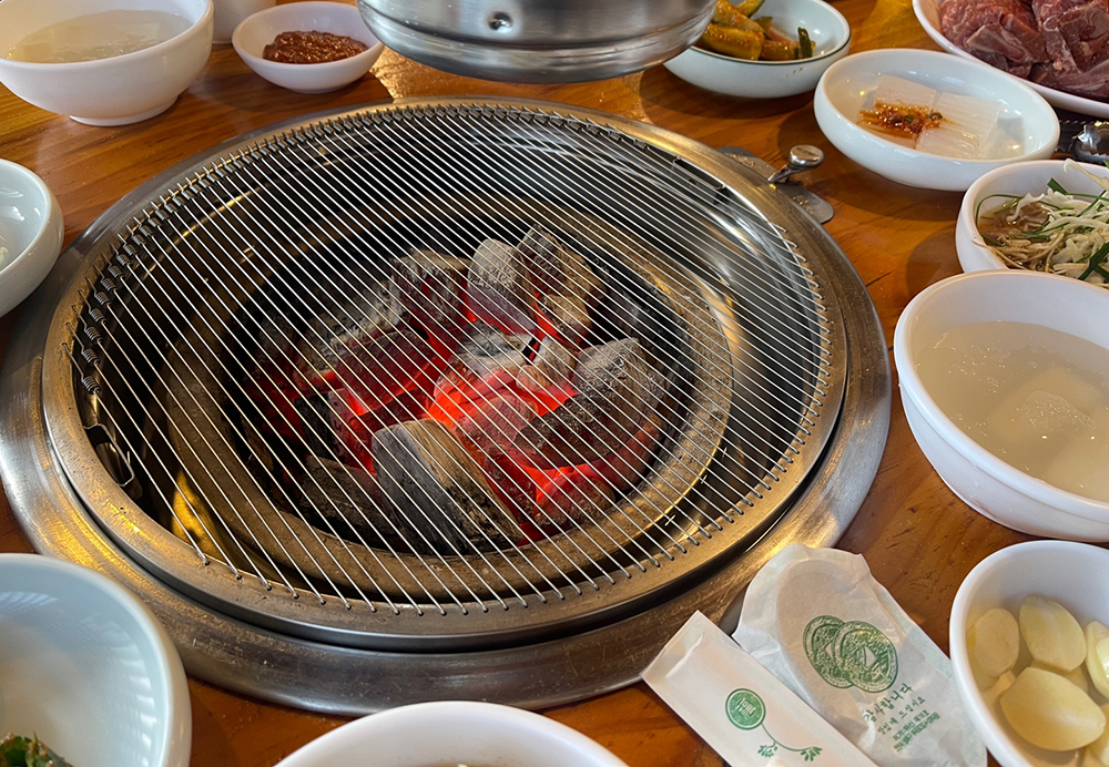 식탁 위에 빈 공간이 없을 정도로 반찬들이 한 번에 차려졌다. 반찬이랑 밥을 먹어도 맛있고 고기와 먹으면 더 맛있는 반찬들이었다. 이동 갈비를 먹기 위해 몇 군데의 갈빗집을 방문했다. 다른 음식점도 저마다의 장점이 있겠지만 개인적으로는 명지원이 가장 깔끔하고 양도 많다고 생각되었다.