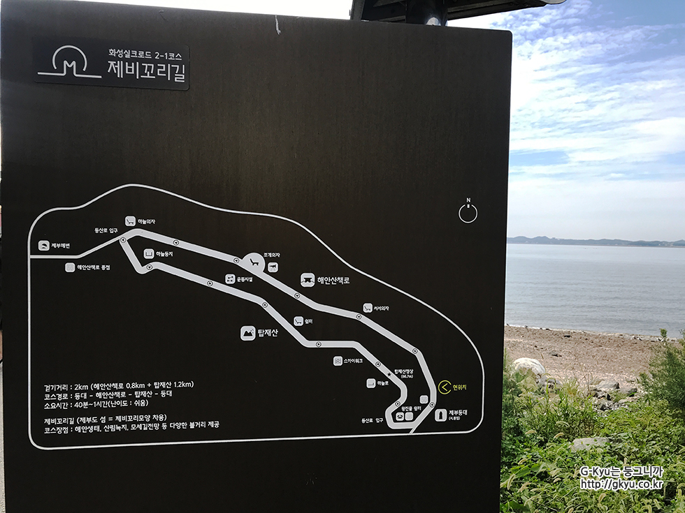 사진에도 볼 수 있듯 전체 코스를 돌아보면 시간이 걸릴 테지만, 해안가 부분만 보고 돌아온다면 그리 긴 시간이 필요하지 않다 만조 때도 제부도에 있을 예정이라면, 바닷물이 들어온 그 위를 걸어 다닐 수 있을 것 같았다