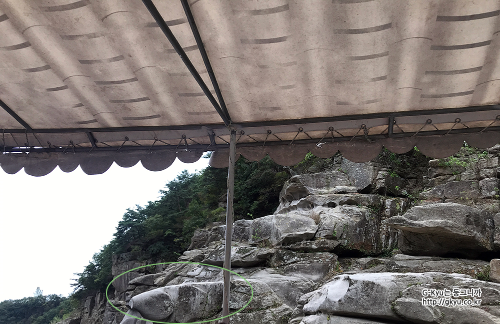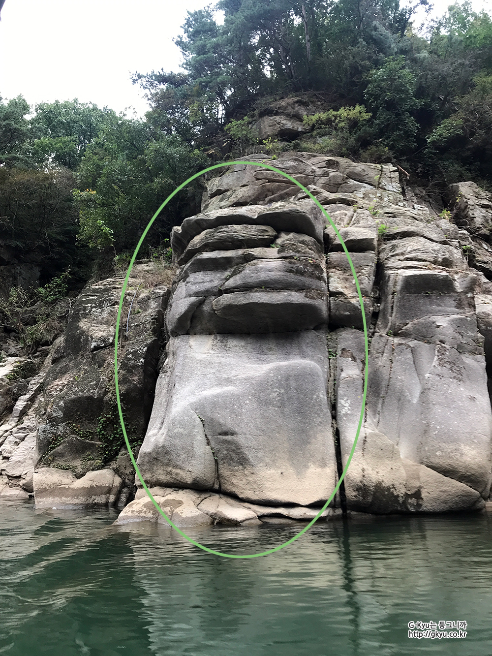 배는 다시 출발했고, 바위를 지나치며 각 명칭을 설명해 주었다 동그라미를 친 곳이 잉어 바위