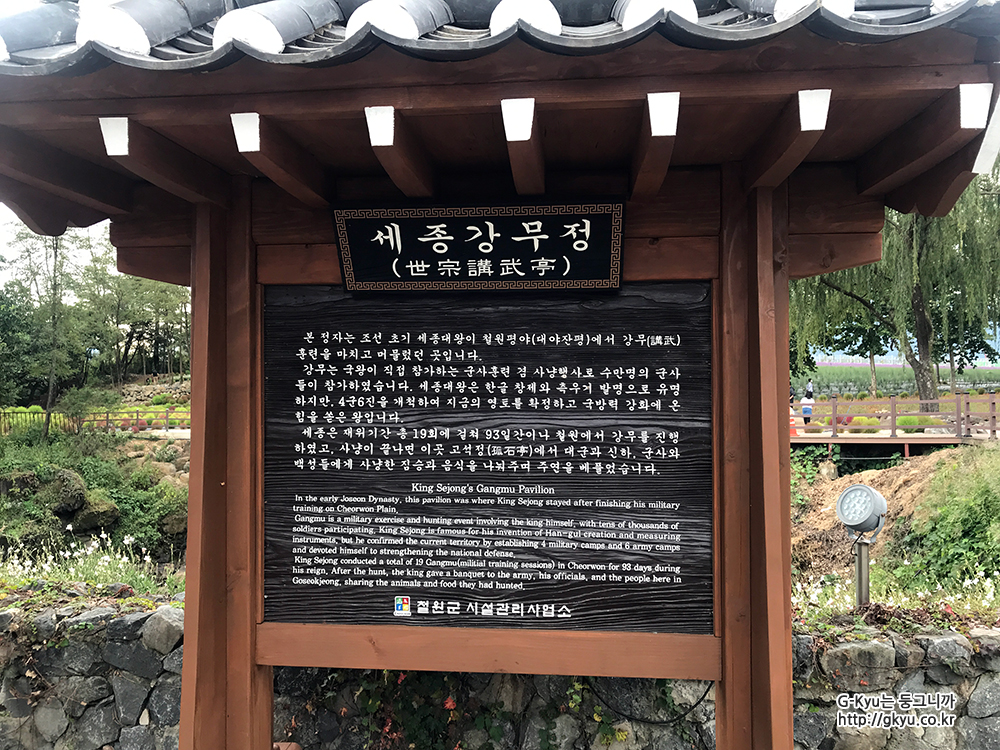 본 정자는 조선 초기 세종대왕이 철원평야 (대야잔평)에서 강무 훈련을 마치고 머물렀던 곳입니다