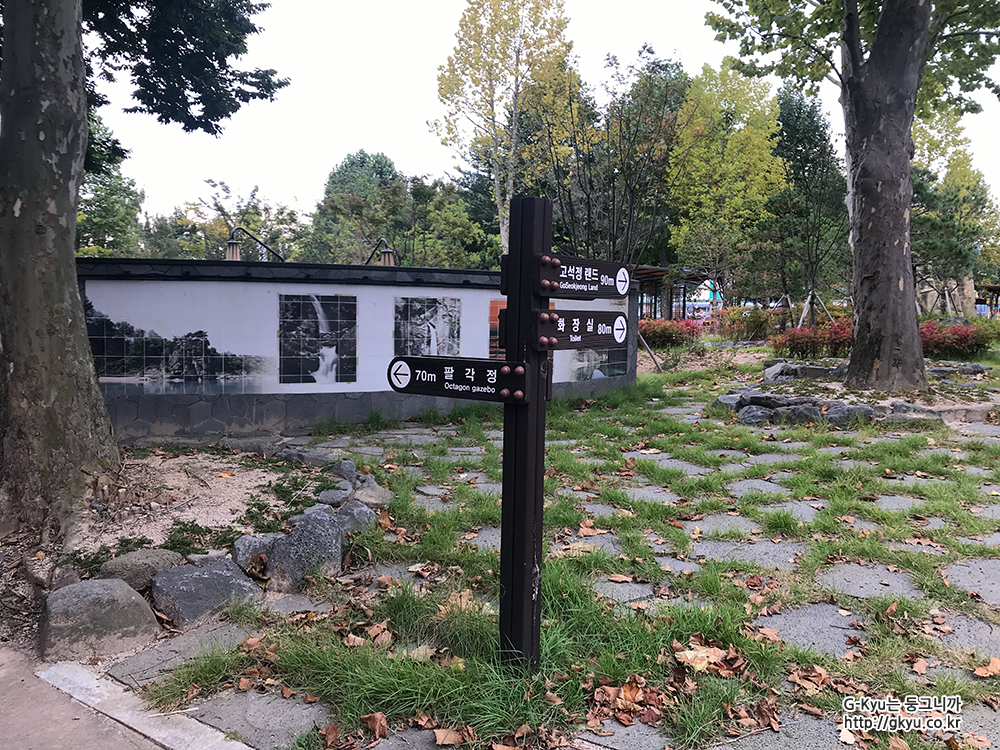 약 70여 미터 앞에 팔각정이 보인다