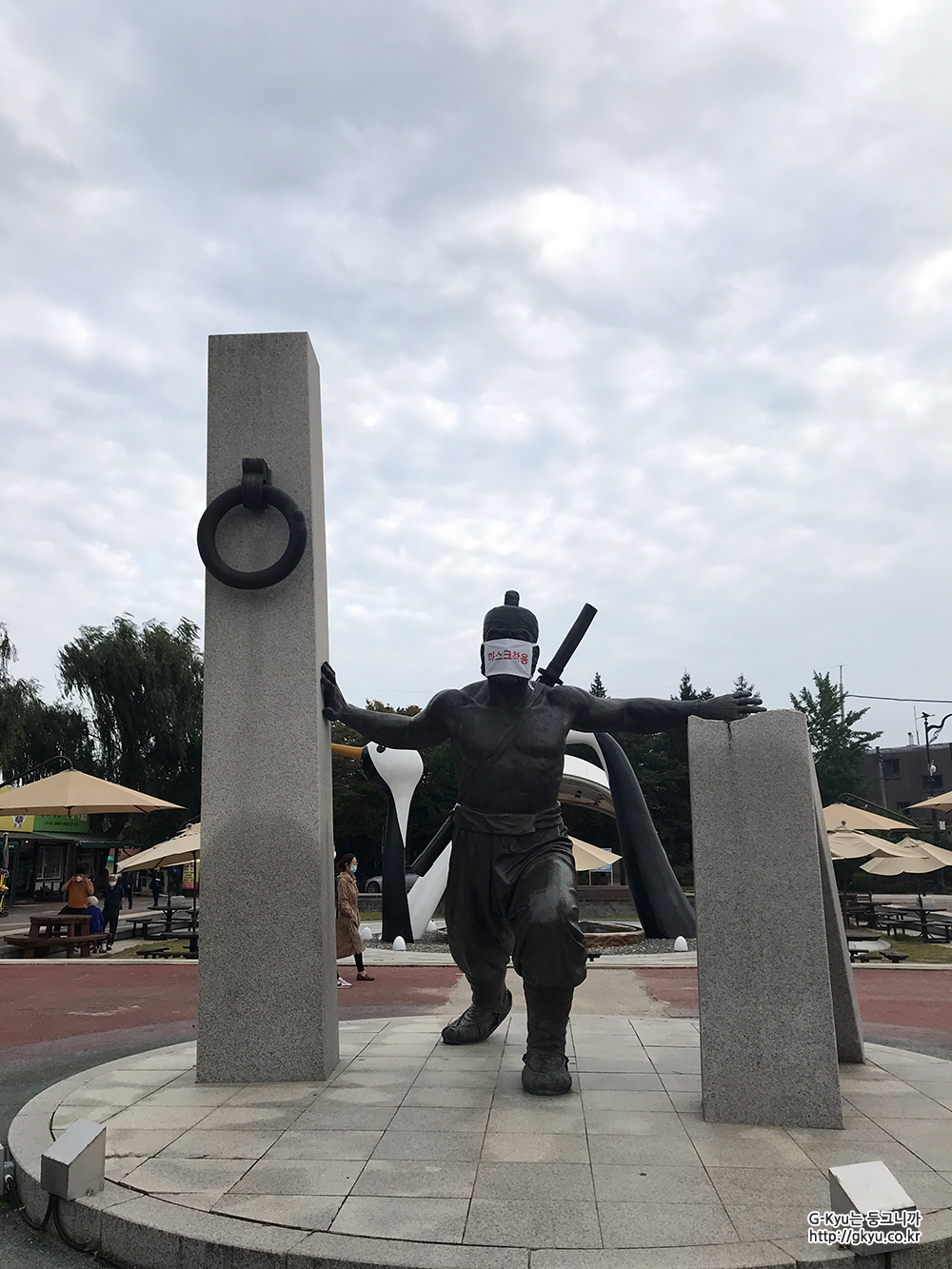 고석정은 임꺽정이 숨어 활동했던 지역이어서 그런지 홍보대사처럼 큰 동상을 만들어 놓고, 코로나 확산 방지를 위해