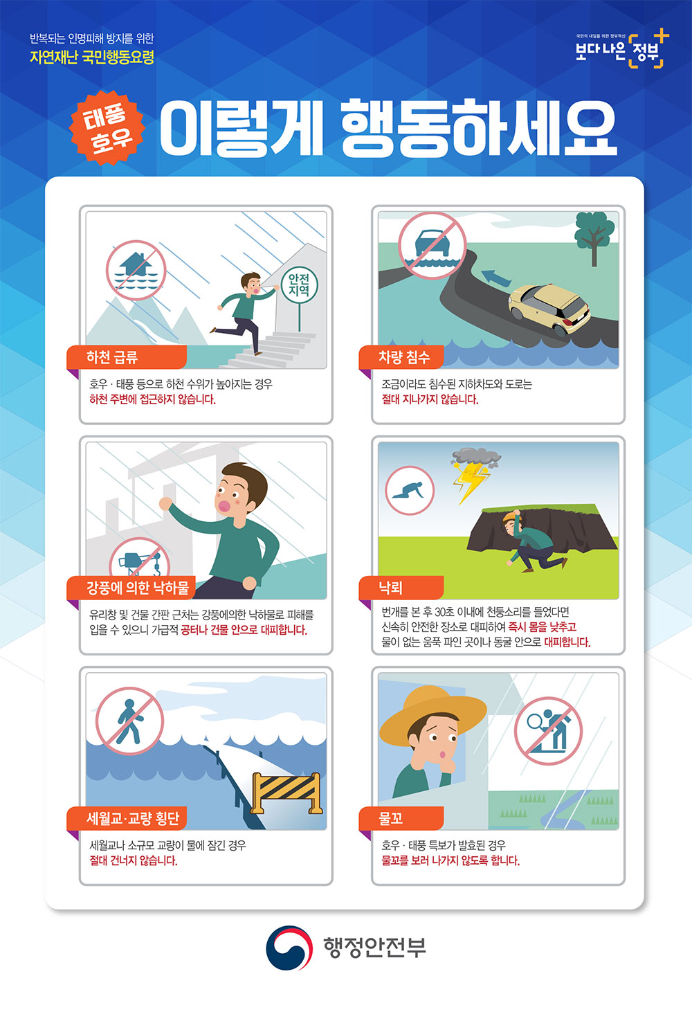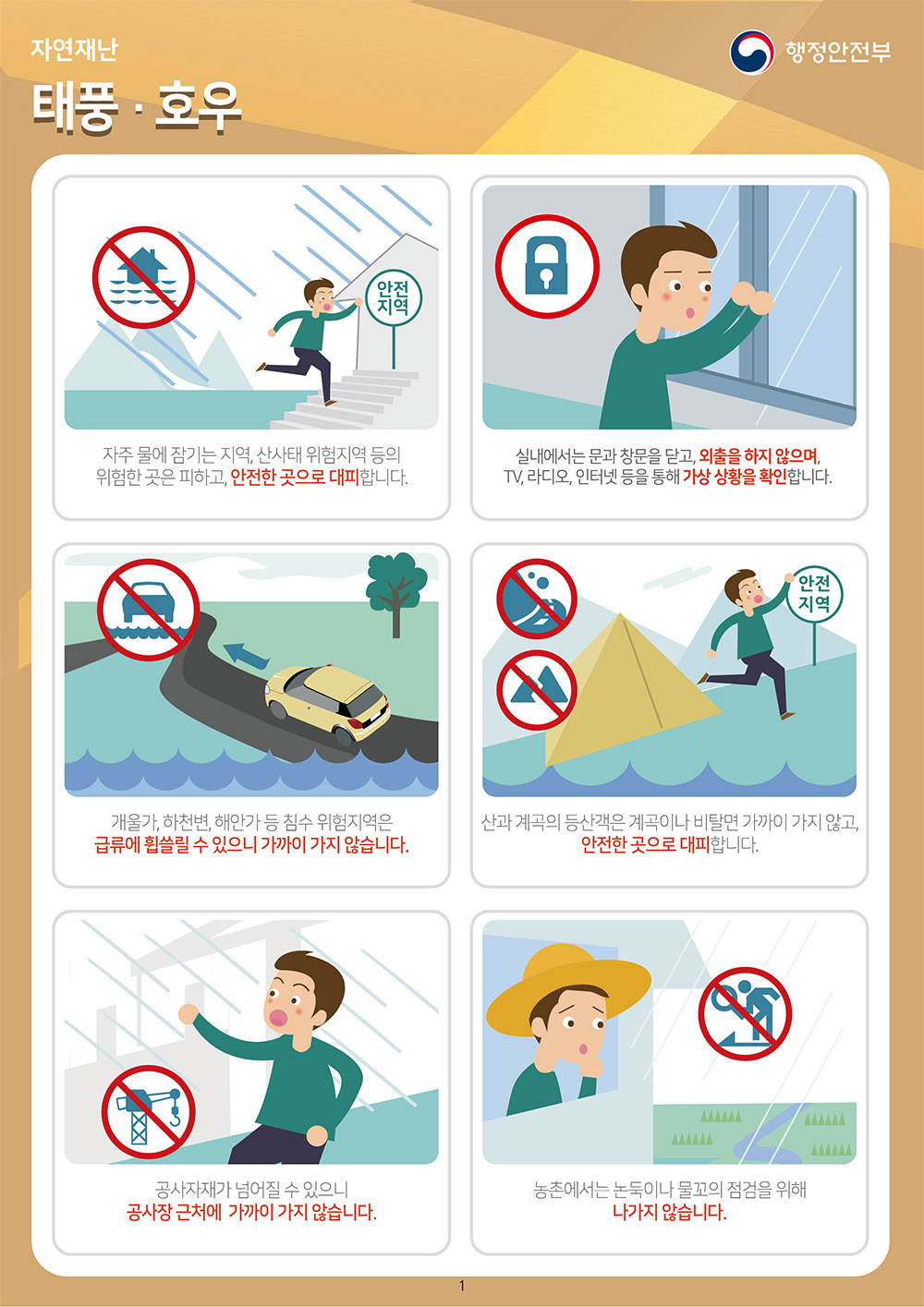 위험을 무릅쓴 행동을 하지 않고 재난 가이드를 참고해서 적용하면 피해를 줄일 수 있다.