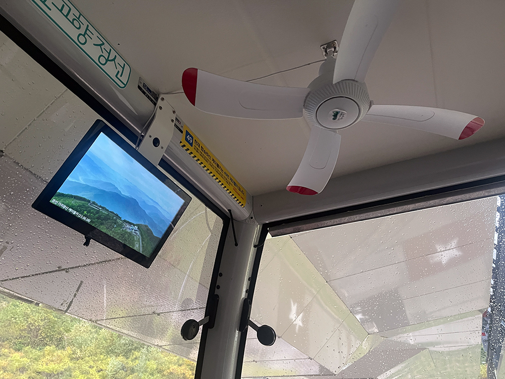 고지대 케이블카이므로 평균 기온이 높지 않을 것 같은데 선풍기가 있으니 신기하다는 생각이 든다.