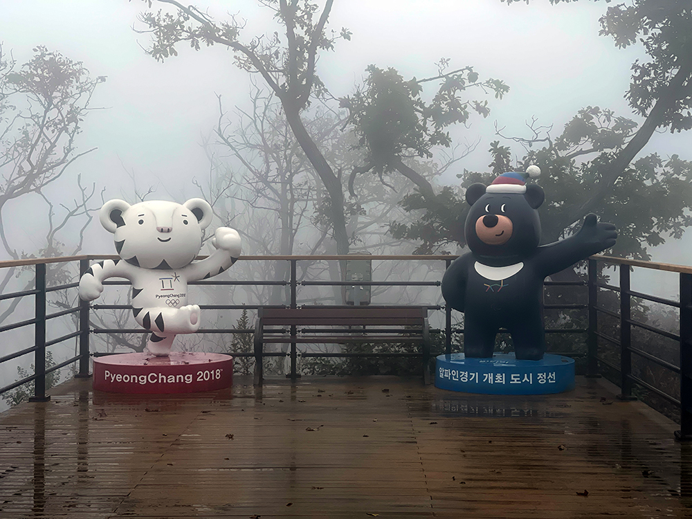 이곳은 평창이 아니지만 강원도 여행을 오면 곳곳에서 만날 수 있는 캐릭터인 수호랑과 반다비.