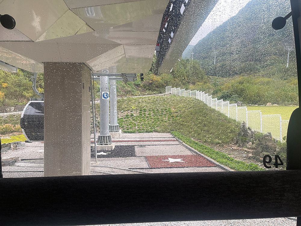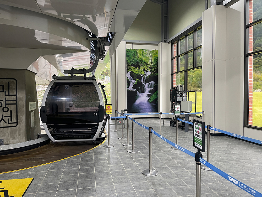 종점에 다다르자 안내원이 보이고 박자에 맞춰 케이블카에서 내린다.