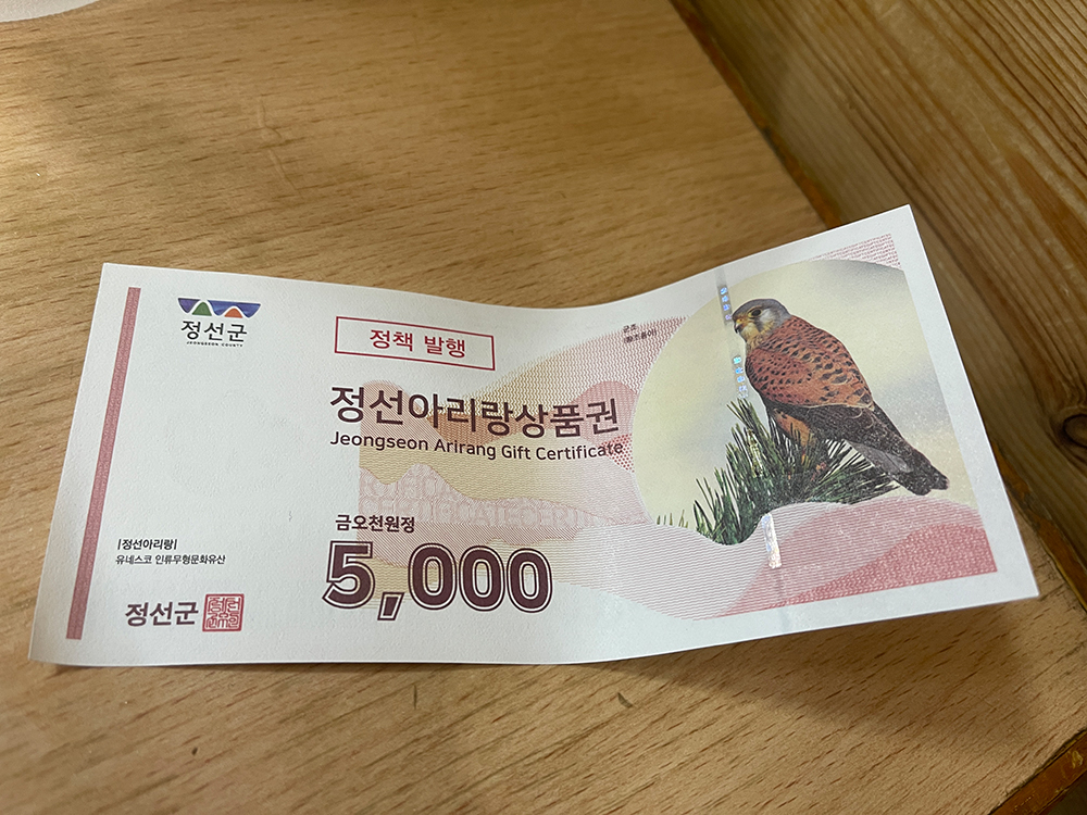 1인당 5,000원의 정선 아리랑상품권을 받게 된다.