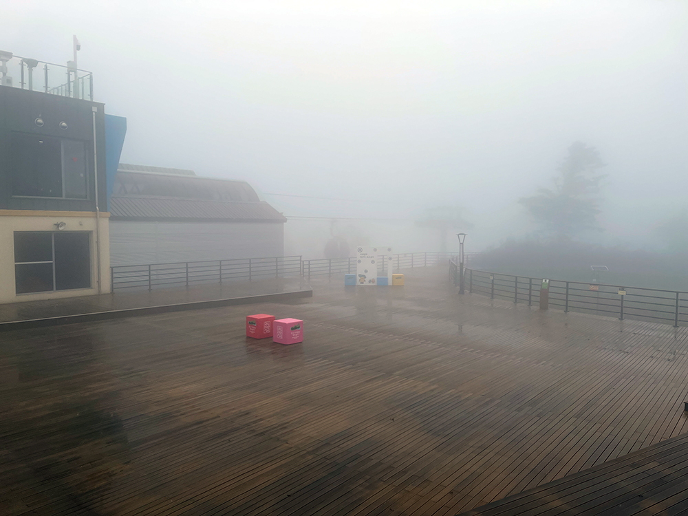 앞이 보이지 않지만 케이블카는 성실하게 오르고 있어서 마치 멈춰 있는 것 같은 느낌마저 든다.