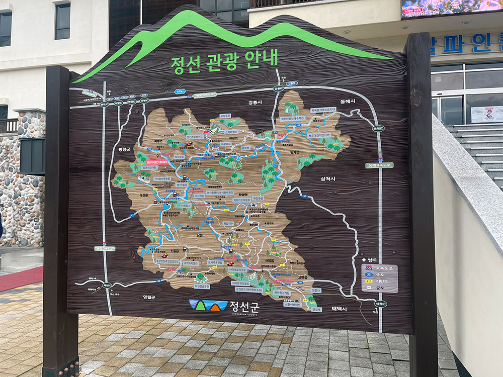 사방이 산으로 둘러싸인 정선이지만 이렇게 안내도를 보니 수목원, 동굴, 공원, 휴양림 등등 가 볼만한 곳이 많았다.