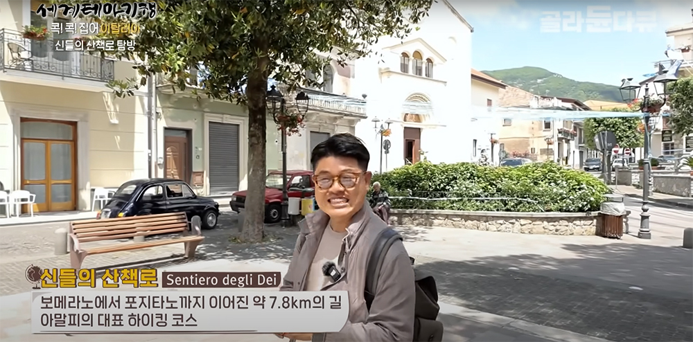 몸이 건강하다면 보메라노에서 출발해 포시타노(포지타노)까지 걷는 신들의 산책로를 걷길 추천하며 코스를 소개하는 임성일 가이드.