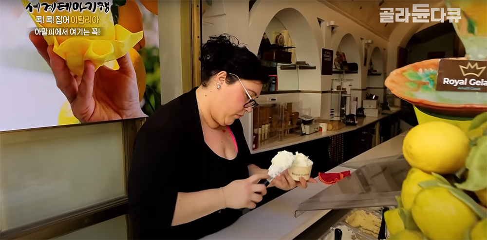 레몬을 넣은 젤라토를 판매하는 디저트 가게.