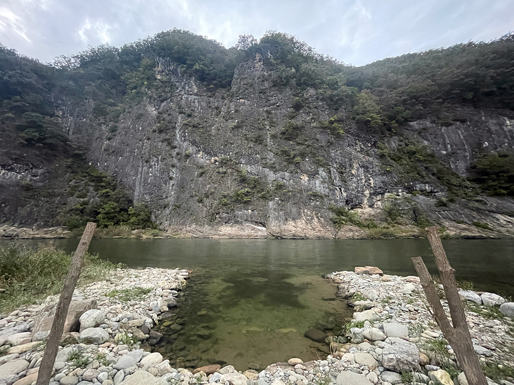 사진상 화살표로 가면 강가로 내려갈 수 있는 길이 있다.