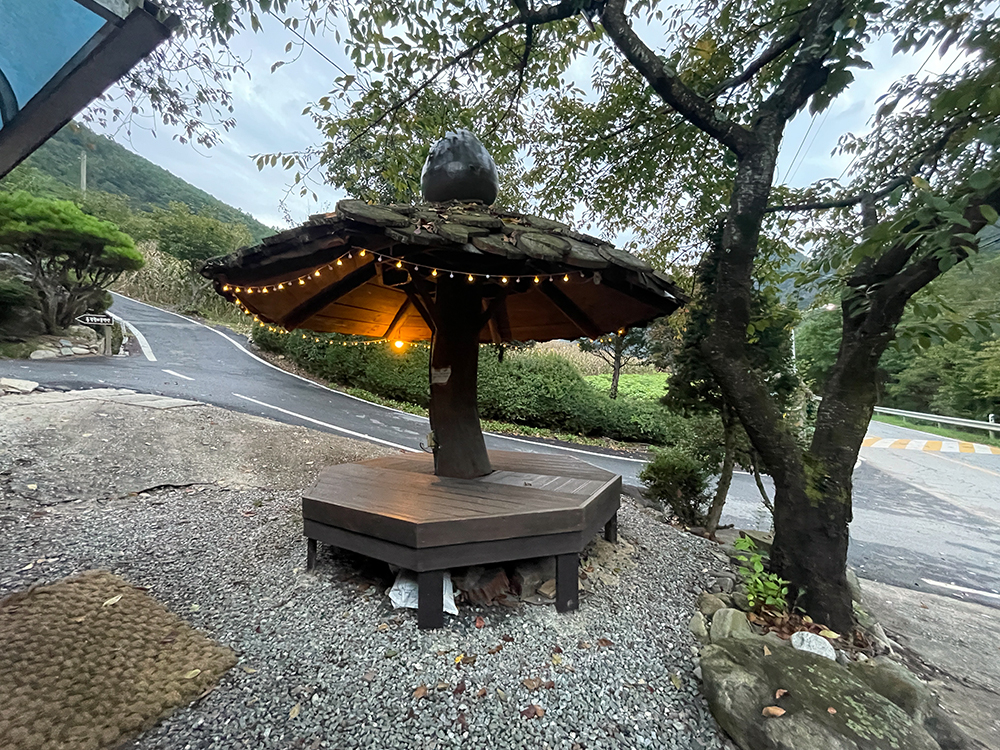 처음엔 무당이 굿을 하려고 만든 구조물 같은 느낌이었는데 나중에 펜션에 방문했던 사람의 후기를 보니 이곳에 그늘막을 쳐 놓았던 나무였다.