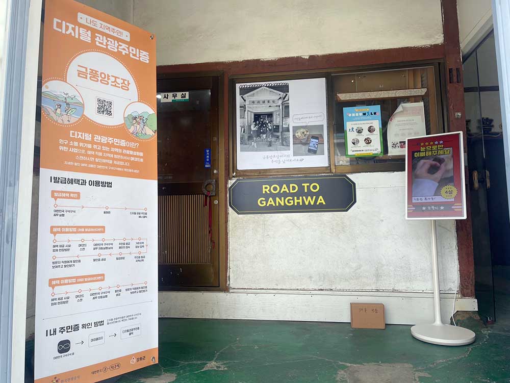 입구엔 디지털 관광 주민증에 대한 소개가 있는 배너가 보인다. 한국관광공사에서 만든 프로그램으로 이 프로그램을 휴대폰에 설치하고 등록하면 방문하는 지역의 연계된 업체로부터 할인을 받을 수 있는 혜택이 있다.